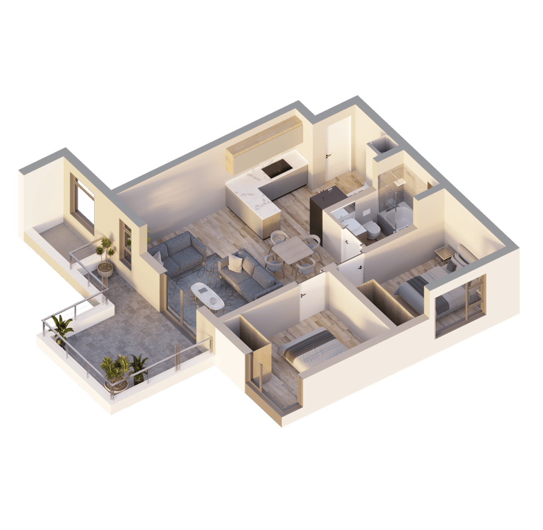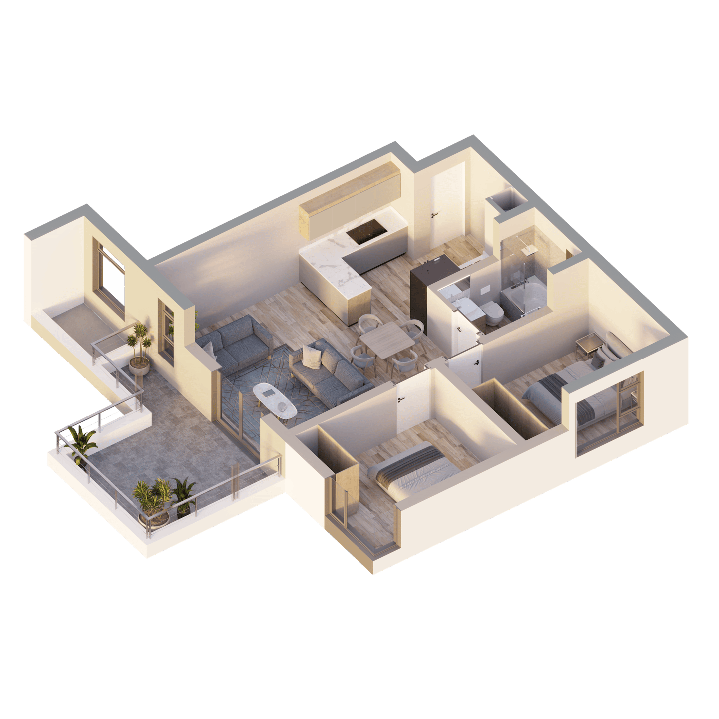 Unit 14 features a bright and thoughtfully arranged second-floor layout that blends comfort with modern convenience. The open-plan living and dining area sits at the heart of the home, seamlessly connecting to a generously sized 16 m² balcony—ideal for outdoor dining, relaxing, or enjoying natural light and fresh air. The unit includes two well-sized bedrooms, both equipped with built-in cupboards, and a full bathroom offering a bath, WC and basin. The kitchen is positioned for practical use, with good flow into the dining space. With a total selling area of 97.5 m², including covered parking, Unit 14 provides a contemporary living environment with excellent functionality and a spacious feel.
