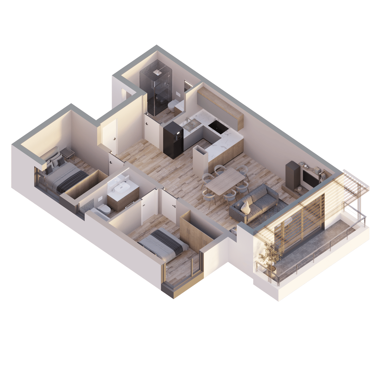 8 m² balcony extending from the living area